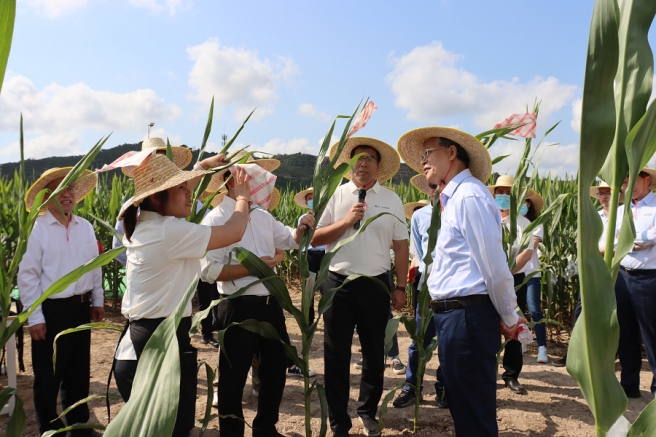 李凡荣走进先正达集团中国南繁玉米育种基地试验田,与育种科研人员深入交流,了解基地建设、育种科研创新成果、商业转化等方面进展。他仔细询问一线育种科研人员的工作和生活情况,对大家长期坚守一线辛勤付出表示感谢。