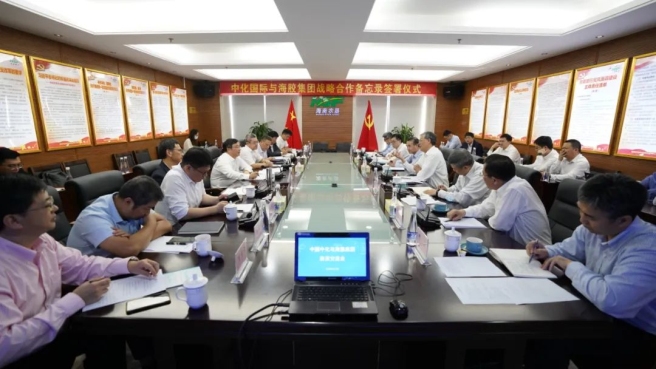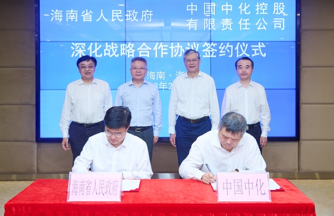 2月12日,中国中化与海南省人民政府在??谇┦鹕罨铰院献餍?,海南省副省长陈怀宇与中国中化副总经理阳世昊代表双方签约。海南省委书记沈晓明、省长冯飞与中国中化董事长李凡荣、副总经理张方见证签约。