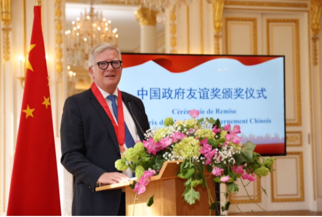 法国巴黎时间4月19日,中国驻法大使馆隆重举行2022年度中国政府友谊奖颁奖仪式。驻法大使卢沙野代表中国政府向蓝星安迪苏首席执行官让马克•杜布朗颁发中国政府友谊奖奖章和证书。
