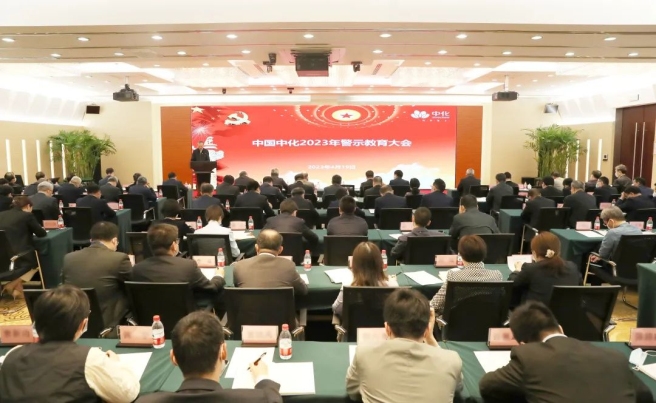 为深入贯彻落实习近平总书记关于全面从严治党的重要论述,认真落实党的二十大精神和二十届中央纪委二次全会精神,4月19日,中国中化召开2023年警示教育大会,通报违纪违法典型案件,强化警示震慑和严管氛围。中国中化党组书记、董事长李凡荣出席会议并讲话,中国中化党组成员、副总经理、总会计师李福利主持会议,中国中化纪检监察组组长、党组成员王舸通报典型案件。中央第八巡视组有关负责同志应邀参会。公司党组班子成员、总部各部门主要负责人、各二级单位主要负责人以及人力、党群、纪检、办公室、巡视机构等相关人员102人在主会场参会,纪检监察组、总部各职能部门监察对象,涉粮领域专项巡视组,二级及下属各级单位领导班子成员、中层以上干部、监察对象共20599人在913个视频分会场参会。