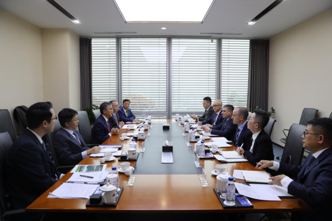 11月2日,中国中化董事、总经理焦健在京会见来访的贝克休斯公司董事长兼首席执行官罗伦佐·西蒙尼利(Lorenzo Simonelli)一行,双方就加深能源、数字化等领域相关合作进行交流。