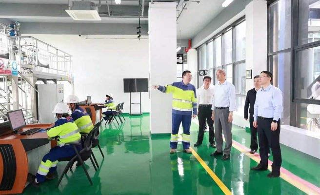 尹弘走进星火有机硅科创园实训中心,考察产业人才培训情况,鼓励企业加大研发投入和人才培养力度,推动有机硅产业转型升级。随后,尹弘详细了解企业数字工厂、工艺流程情况,他指出,星火有机硅作为全球领先的有机硅单体生产企业,以及江西省打造有机硅千亿产业集群的龙头企业,要充分发挥龙头优势,有序推进资源产业向下游延伸,提升全产业链现代化水平,加快打造具有重要影响力的特色产业集群。
